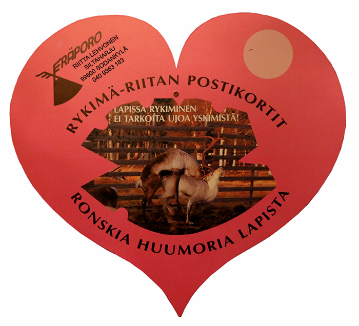Kun kortintekijä työskentelee myös poronteurastajana, ovat korttikuvatkin takuuvarmasti autenttisista tilanteista suoraan poromaailman sydämestä. Riitta Lehvonen on työskennellyt yli 20 vuotta sekä kortintekijänä että poronteurastajana.